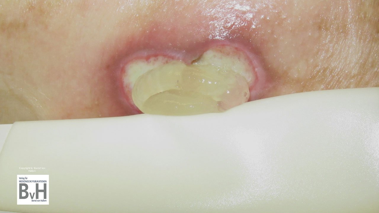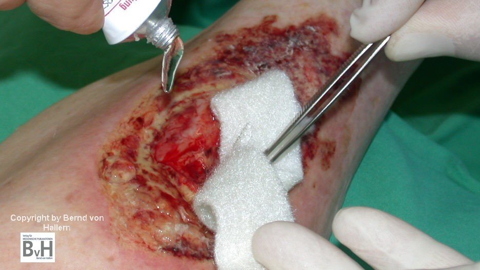 Bild 3: Auch hier muss die Wundumgebung vor Anwendung von Kollagenaseprodukten von PVP-Iod-Resten befreit werden.