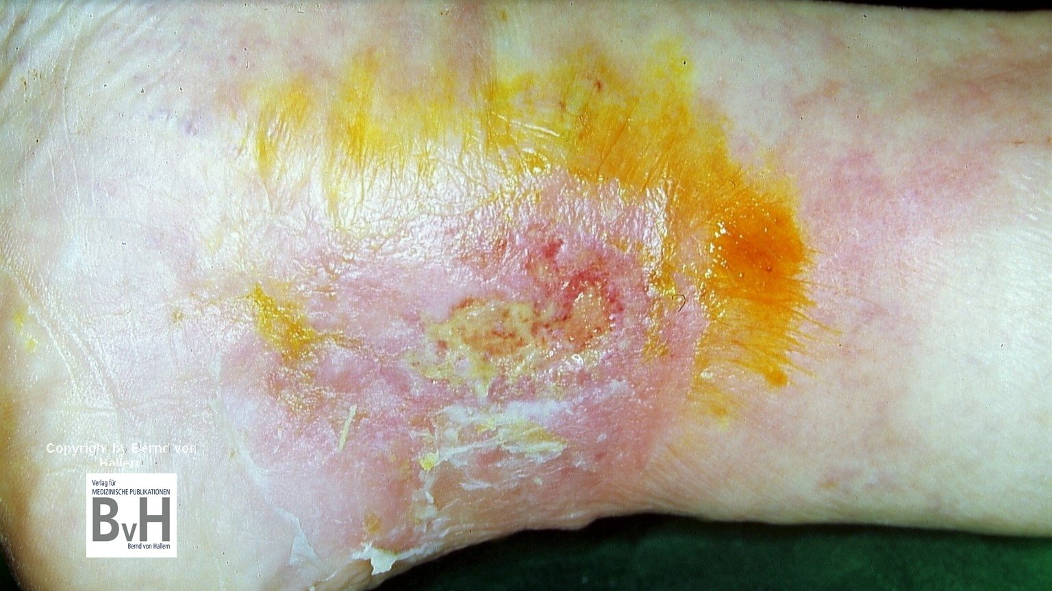 Bild 1: Mit PVP-Iod therapiertes UCV – vor Einsatz von Kollagenaseprodukten muss Iod komplett entfernt werden.