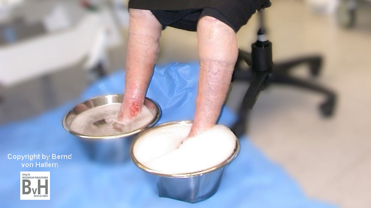 Bild 3: Fußbad mit PVP-Iod bei diabetischen Ulzera an beiden Füßen – Desinfektion erfolglos!