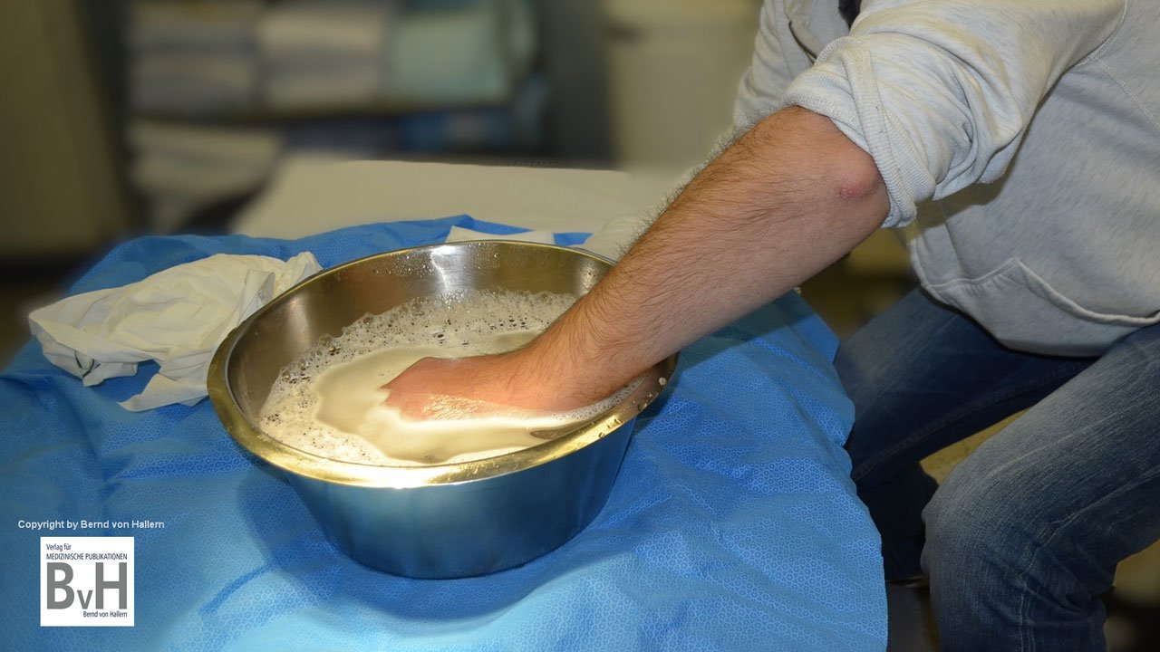 Bild 2: Handbad mit PVP-Iod bei einem Panaritium – Desinfektion erfolglos!